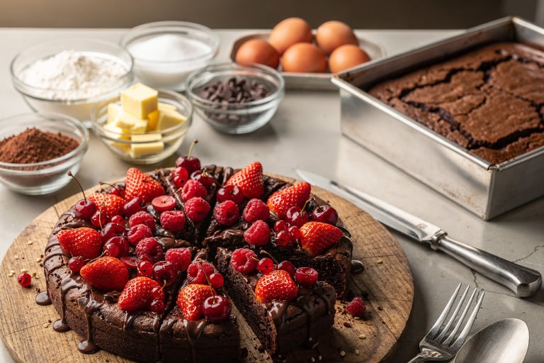 Enseña cómo transformar un brownie simple en una Pizza Brownie visualmente irresistible, utilizando: